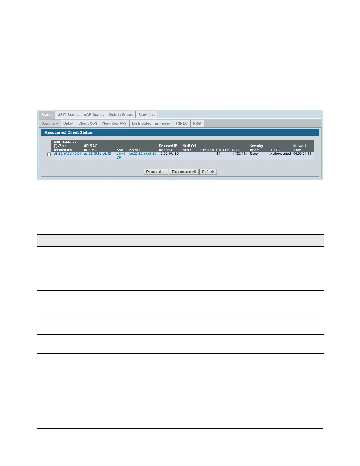 Table 292: Associated Client Status Summary