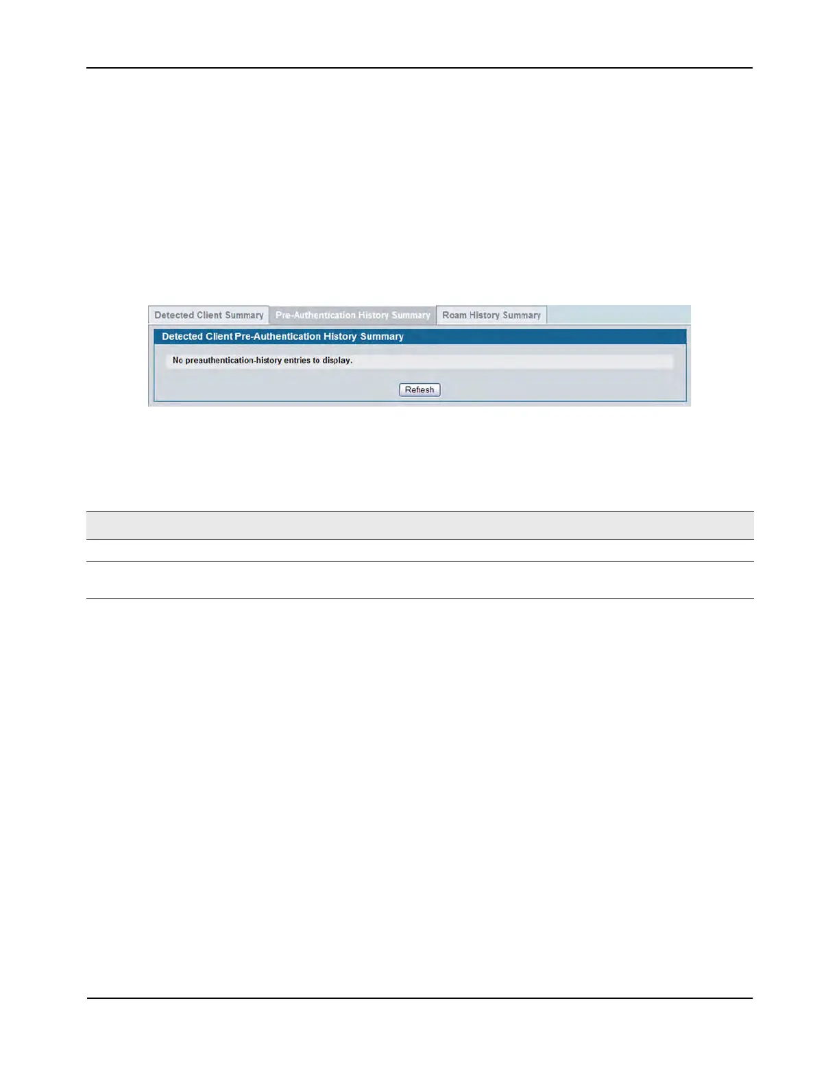 Table 314: Detected Client Pre-Authentication History Summary