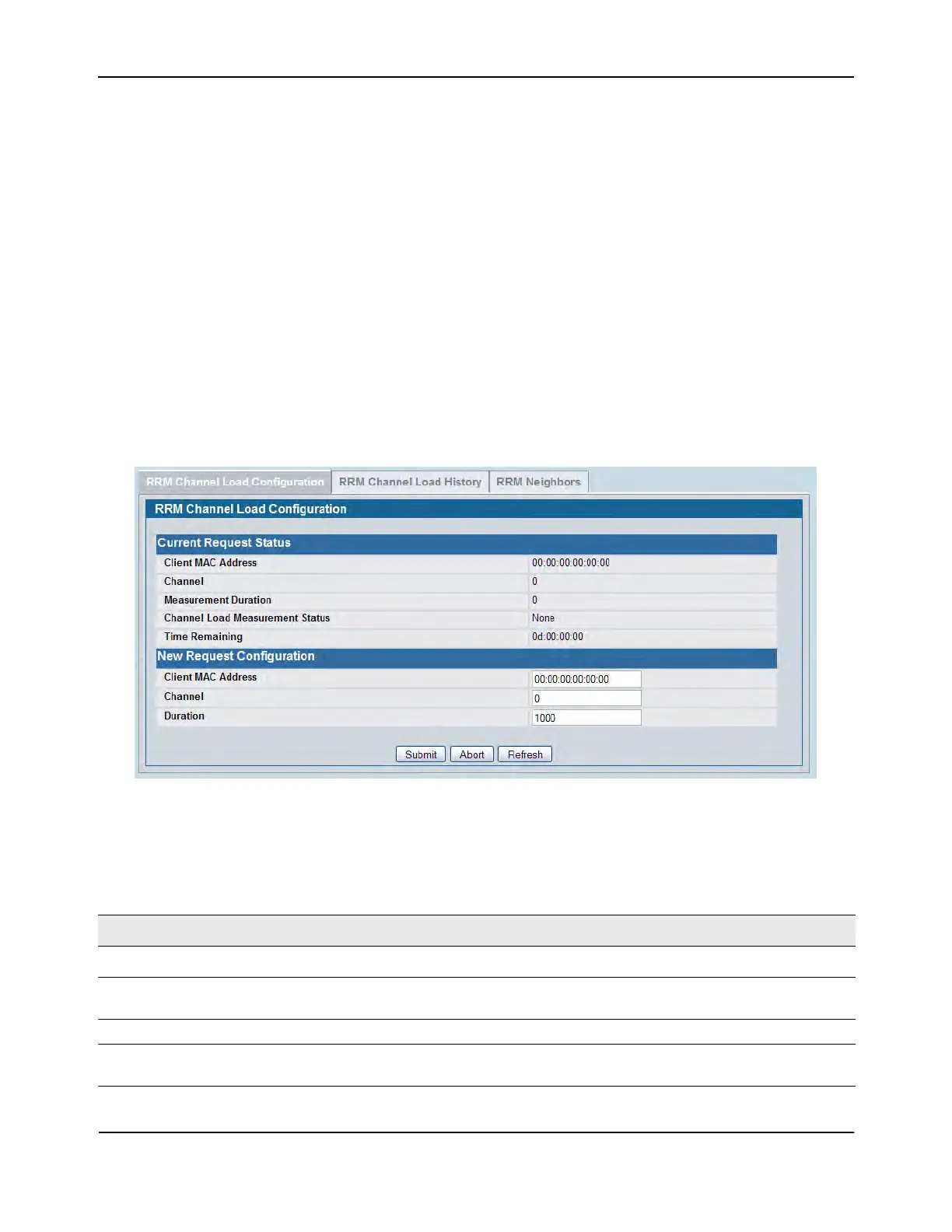 The following table describes the fields on the RRM Channel Load Configuration page.