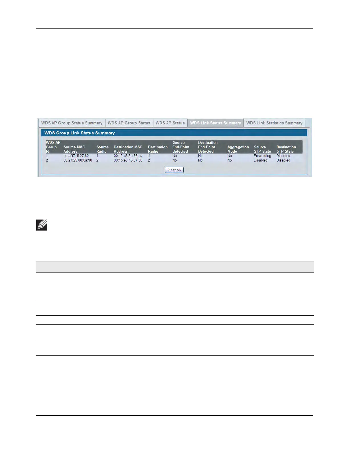 Table 322: WDS AP Link Status Summary