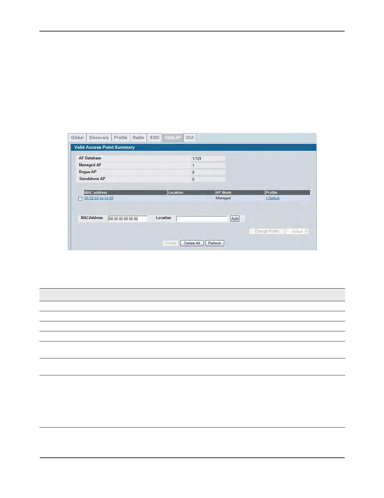 MAC Address Enter the MAC address of the AP in this field. When you add the MAC address, you