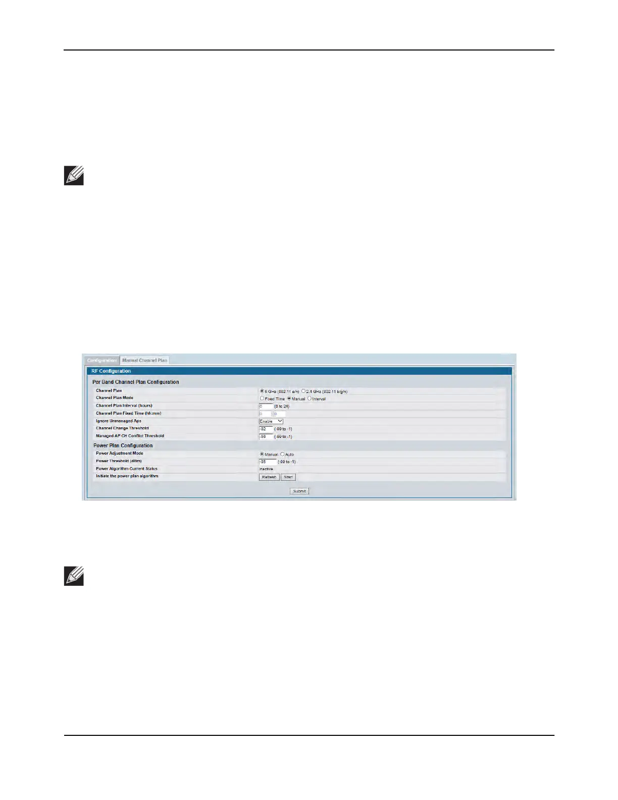 band. To configure Channel Plan and Power Adjustment settings, click AP Management > RF Management.