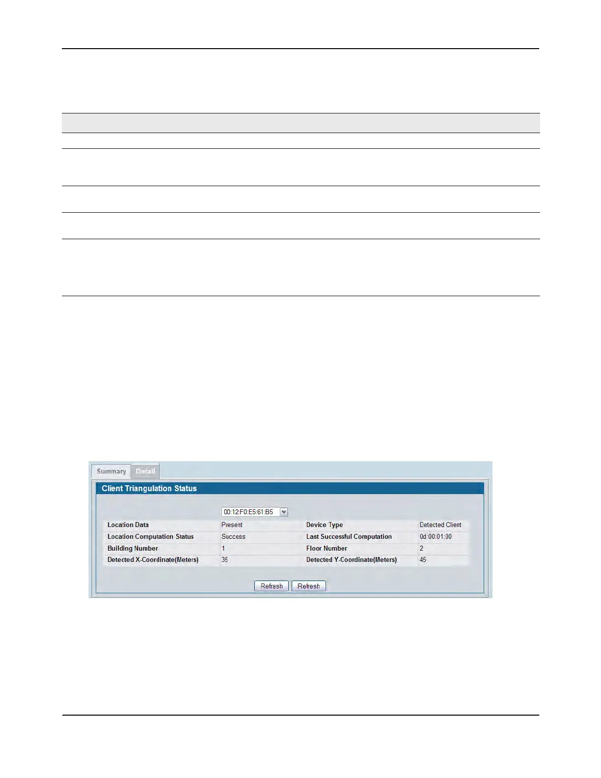 Use the Client Triangulation Status page to view detailed triangulation and location information about a
