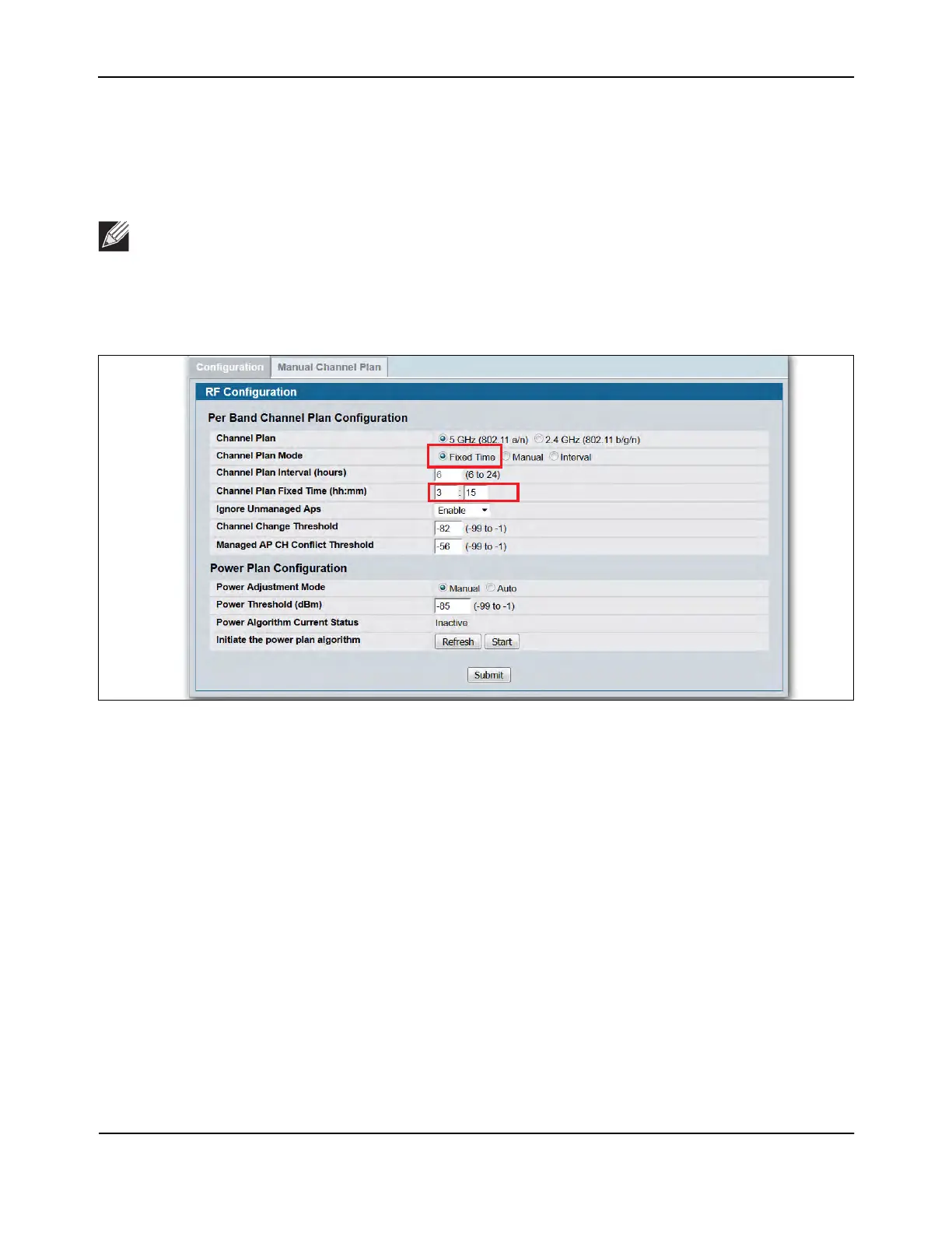 1. Go to the WLAN > Administration > AP Management > RF Management page and note the Channel Plan