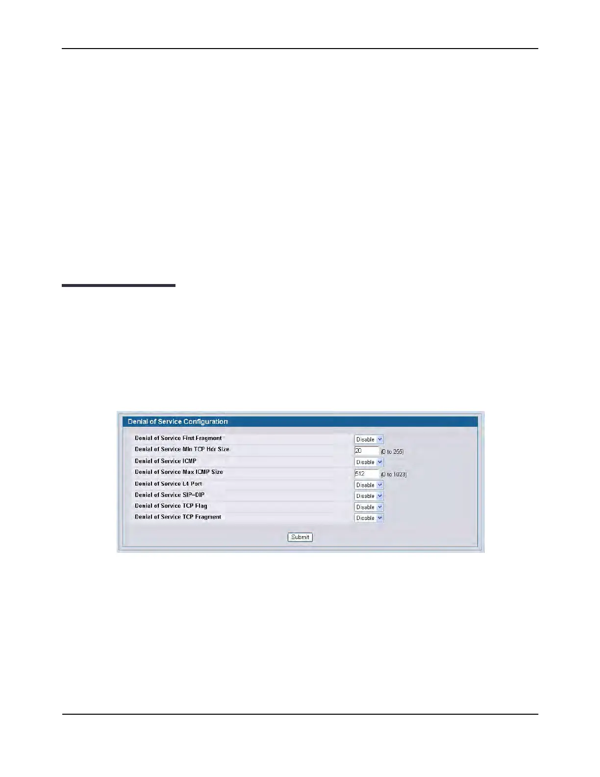 Use the Denial of Service (DoS) page to configure DoS control. D-Link DWS-4000 Series software provides
