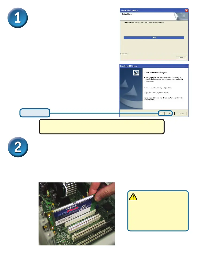 B. Install the DWL-G520 carefully and firmly seat it into an available PCI slot