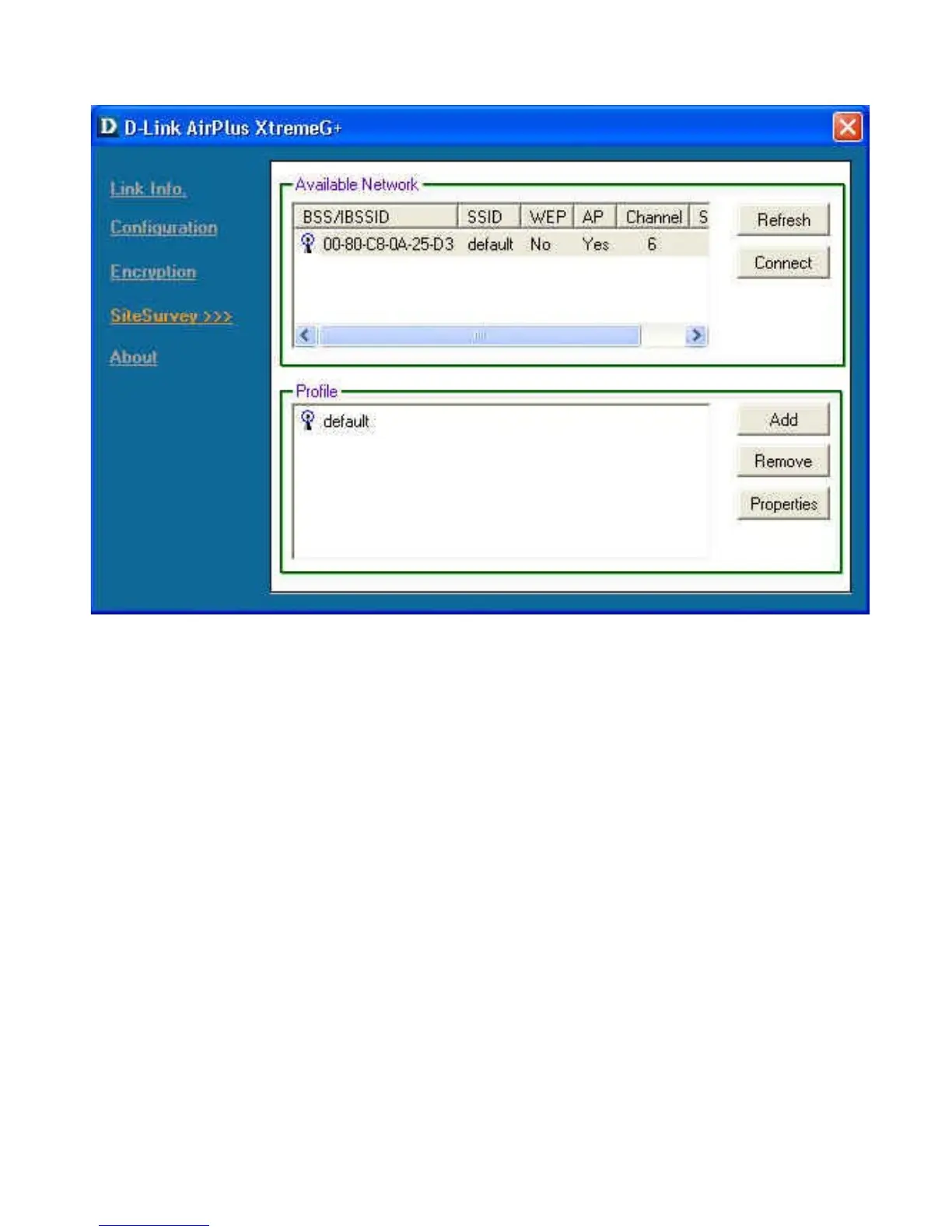 can ADD or REMOVE a profile, or configure the Properties of the profile in