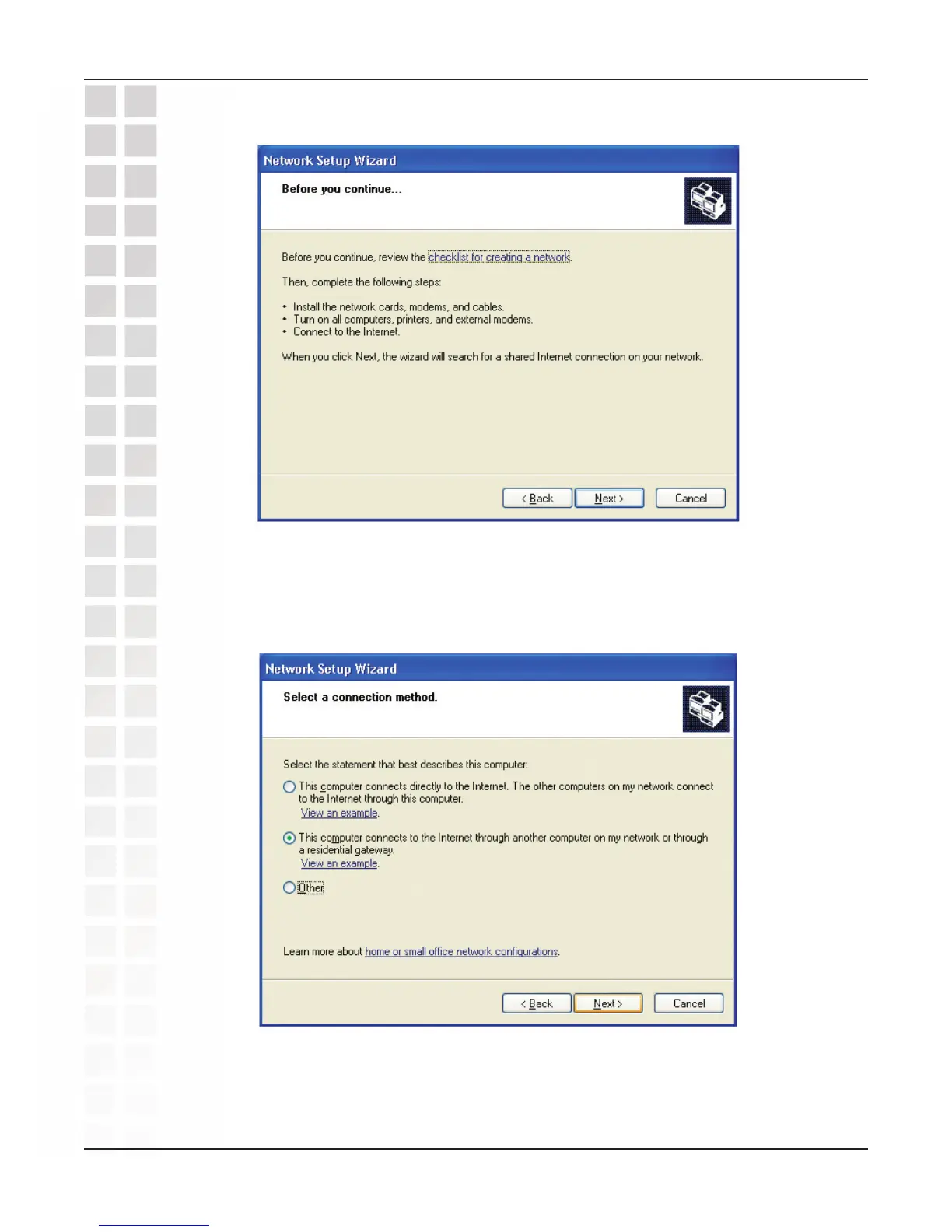 connects to the Internet through a router, select the second option as shown.