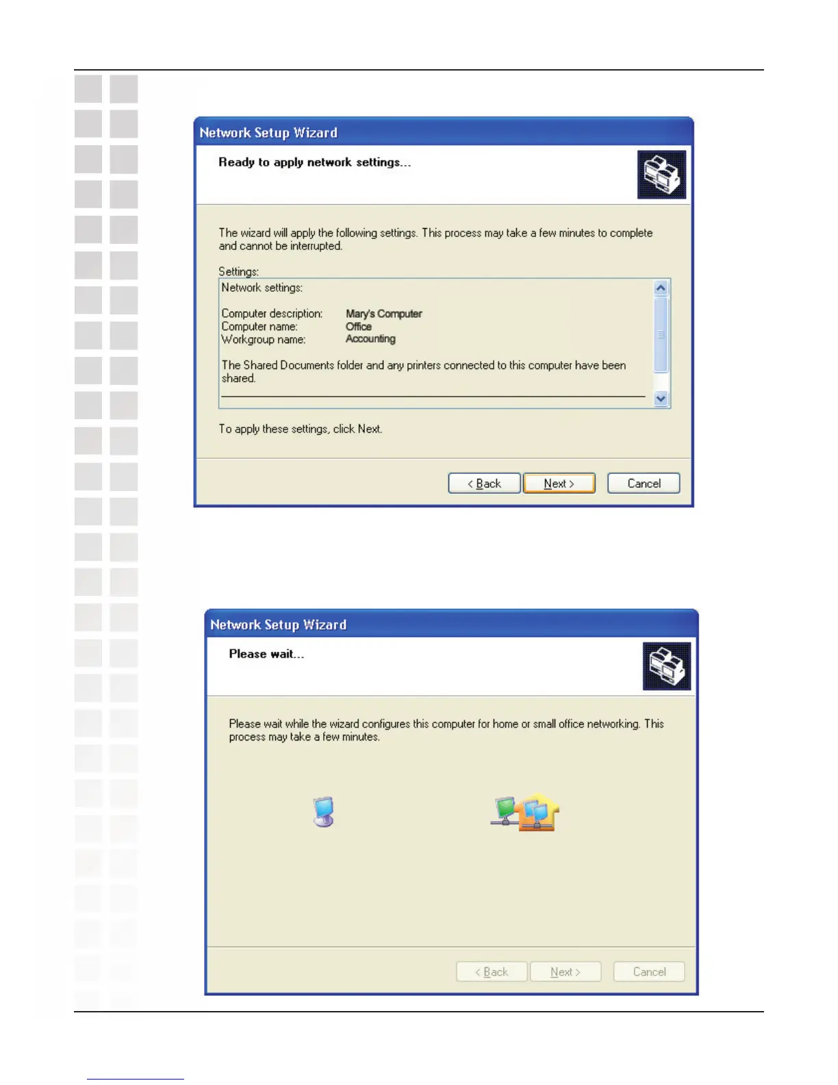 Please wait while the Network Setup Wizard configures the computer.