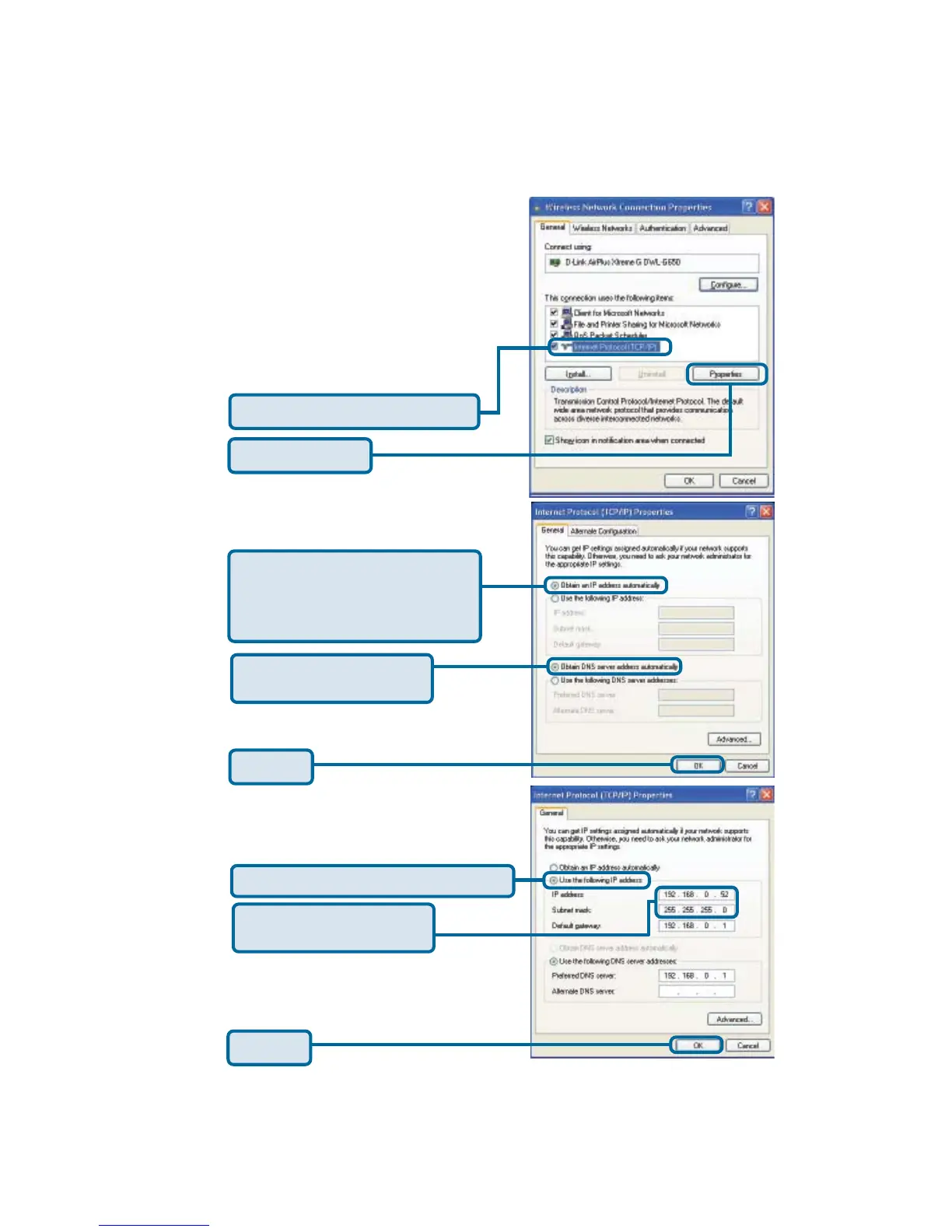 Select Obtain an IP address