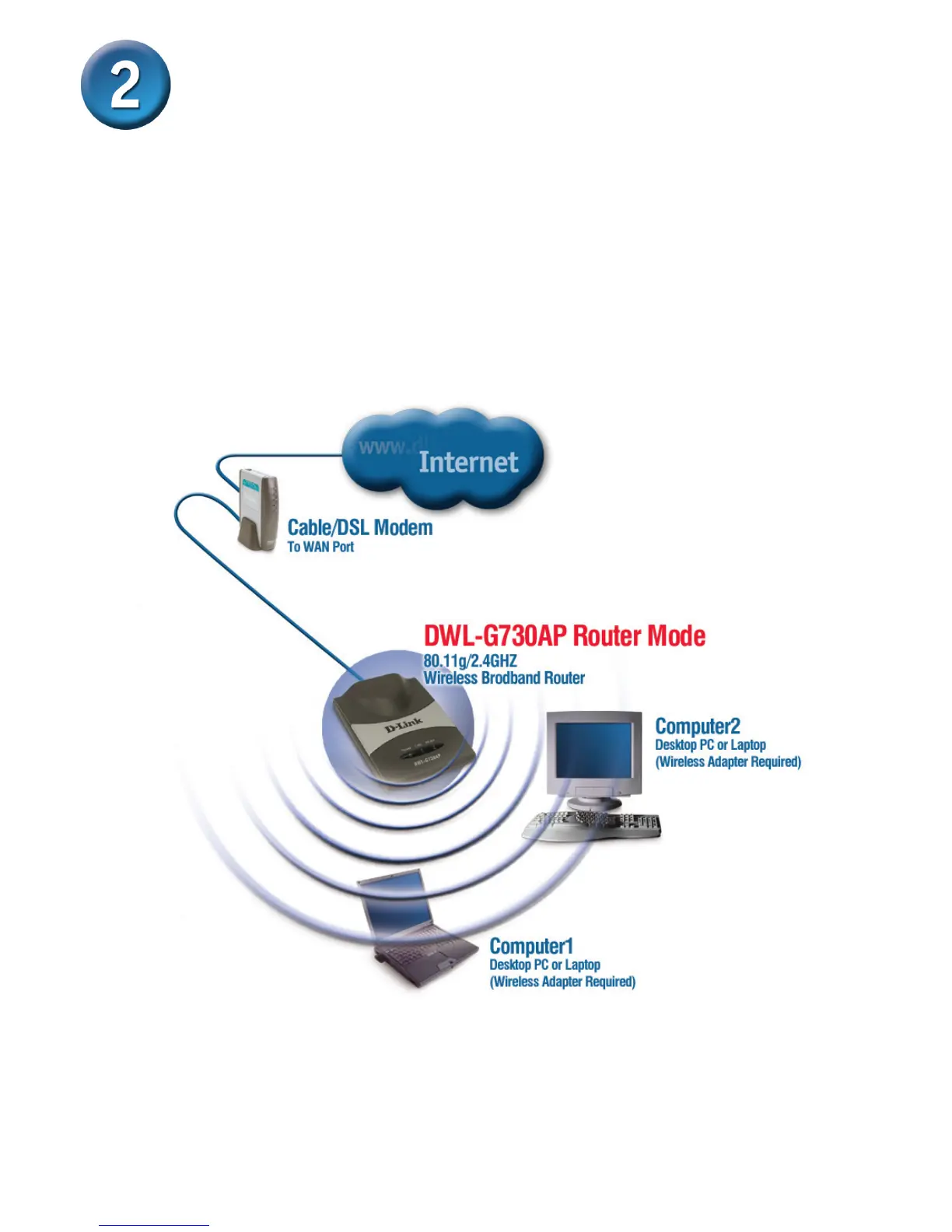 當DWL-G730AP底部上的模式選擇設置為RT時,該設備就進入了路由器模式。下面的圖