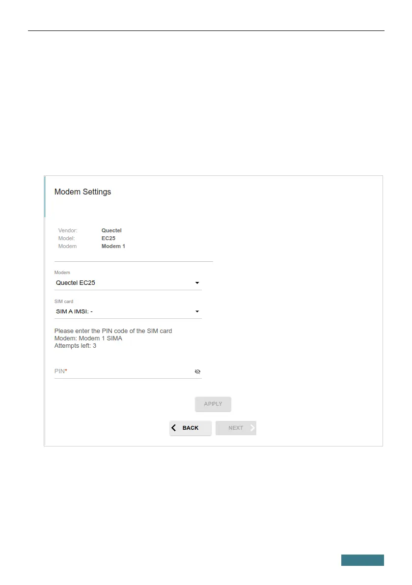 in LTE modem, enter the PIN code in the PIN field and click the APPLY
