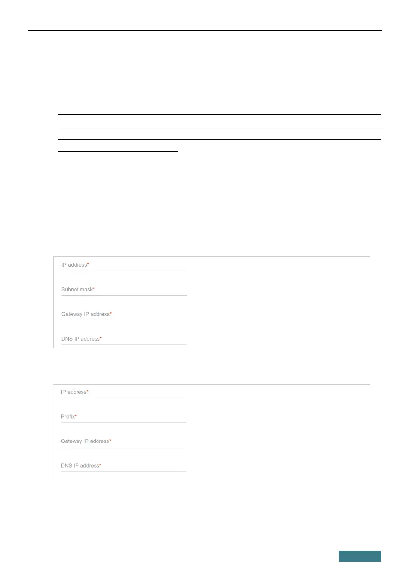 Static IPv6: Fill in the following fields: IP address, Prefix, Gateway IP