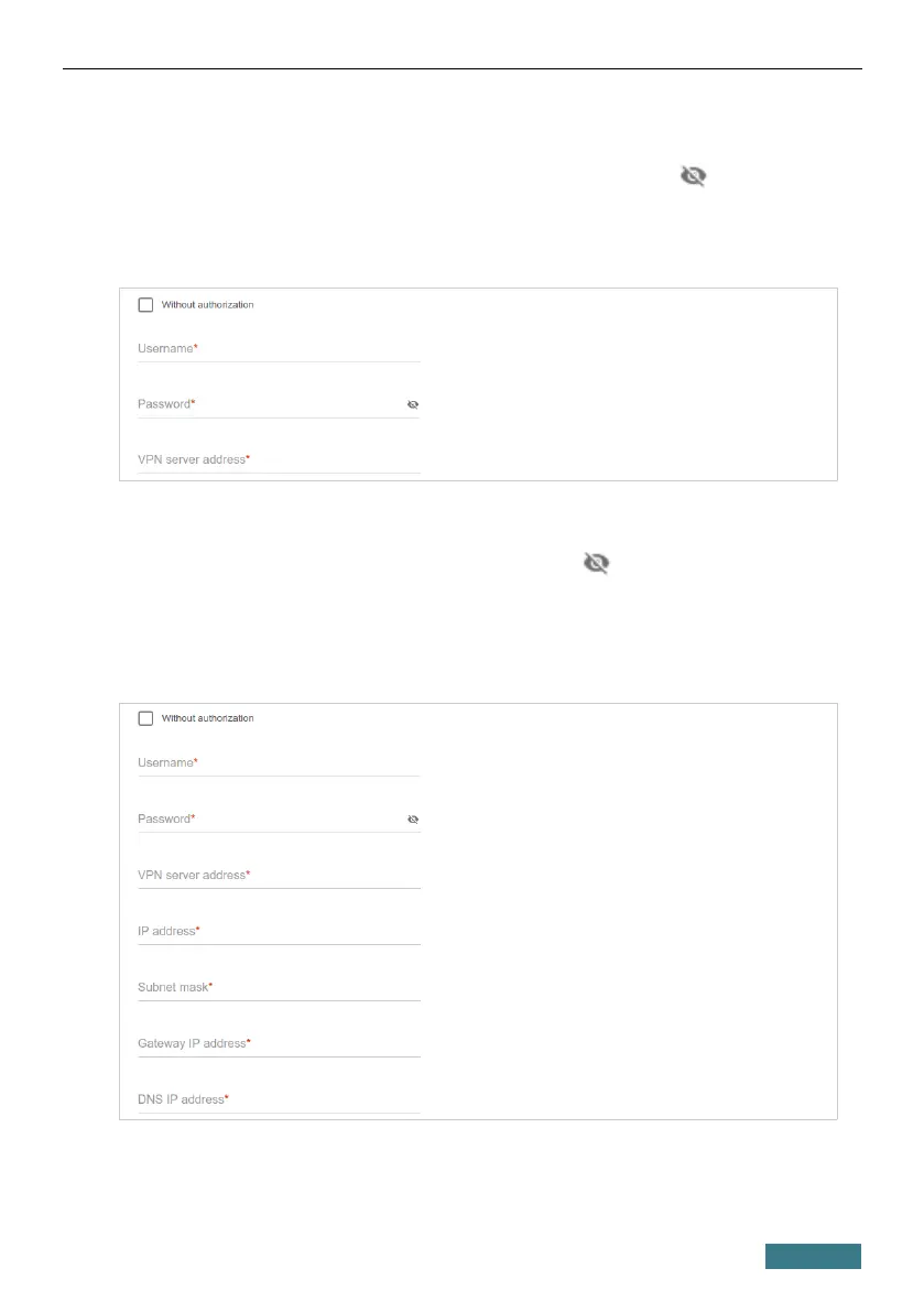 PPTP + Dynamic IP or L2TP + Dynamic IP: Enter authorization data