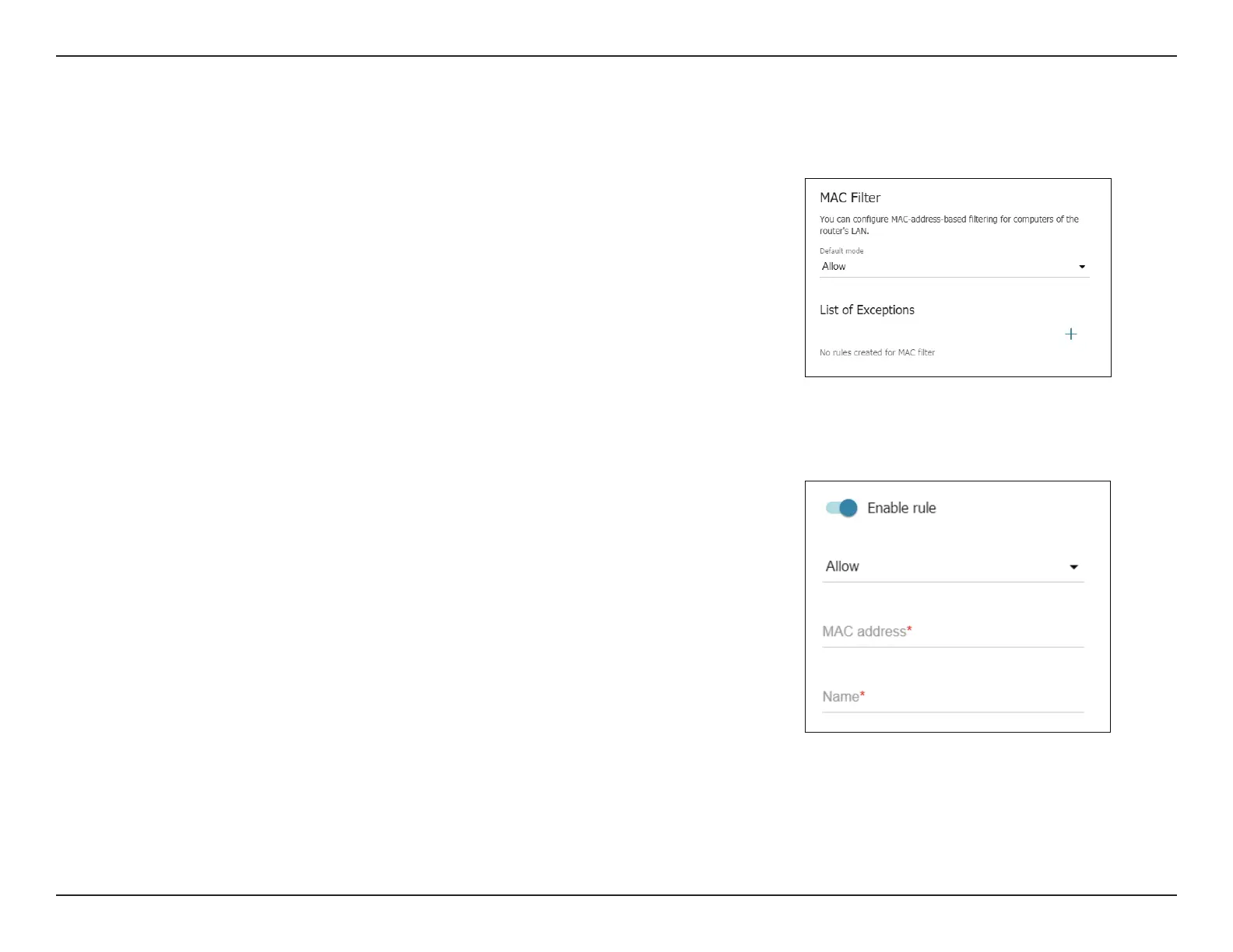 List of Exceptions Add MAC addresses to exempt from the lter.