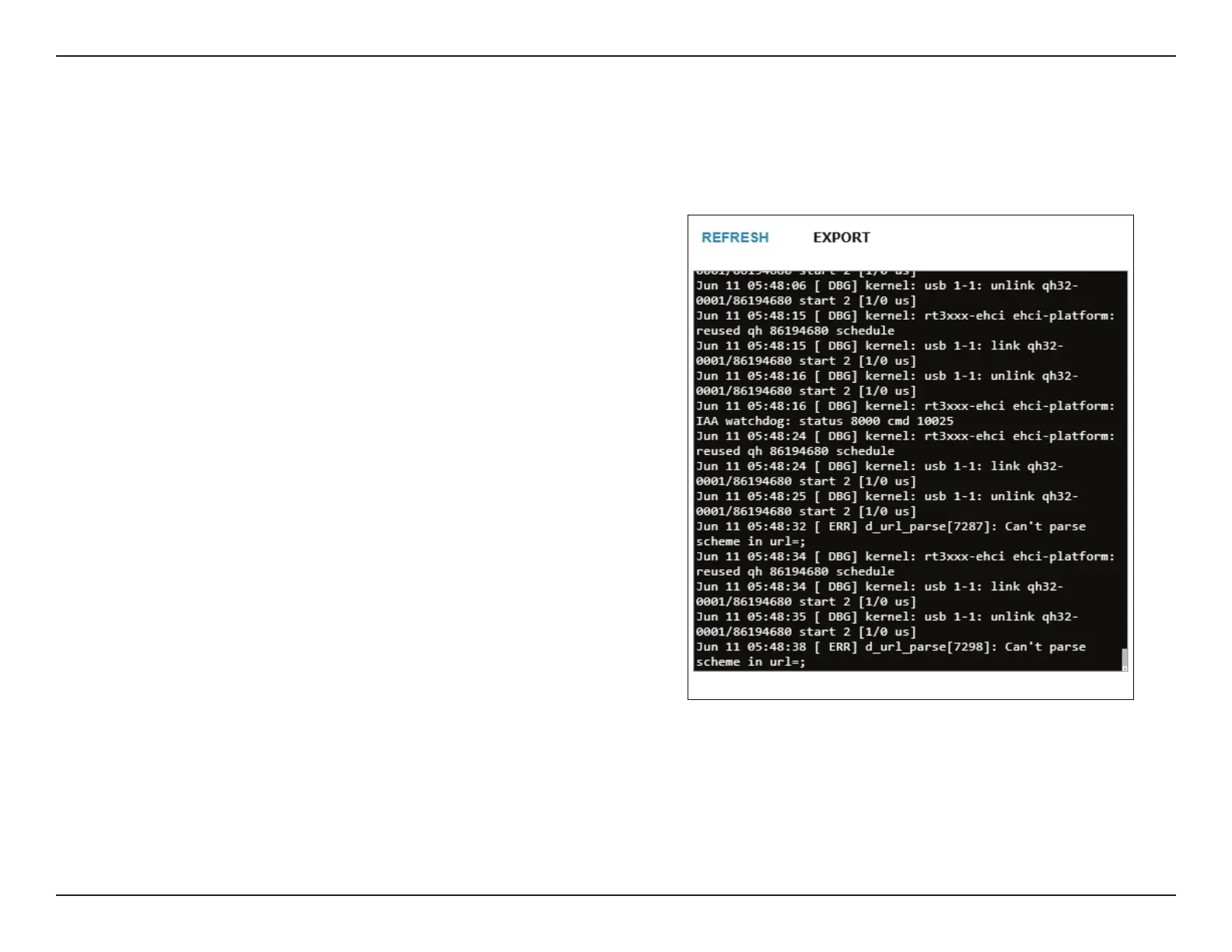 On this page, you can set the system log options, and export and save a copy of the system log.