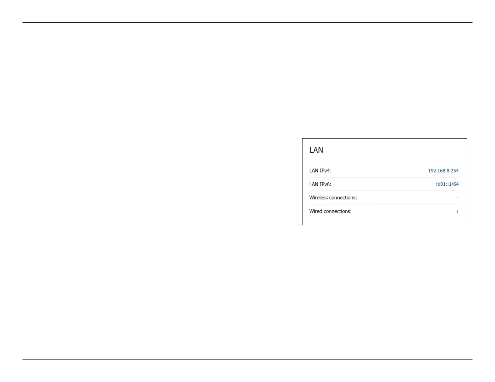 The LAN menu is used to display status information for the LAN interfaces on the router.