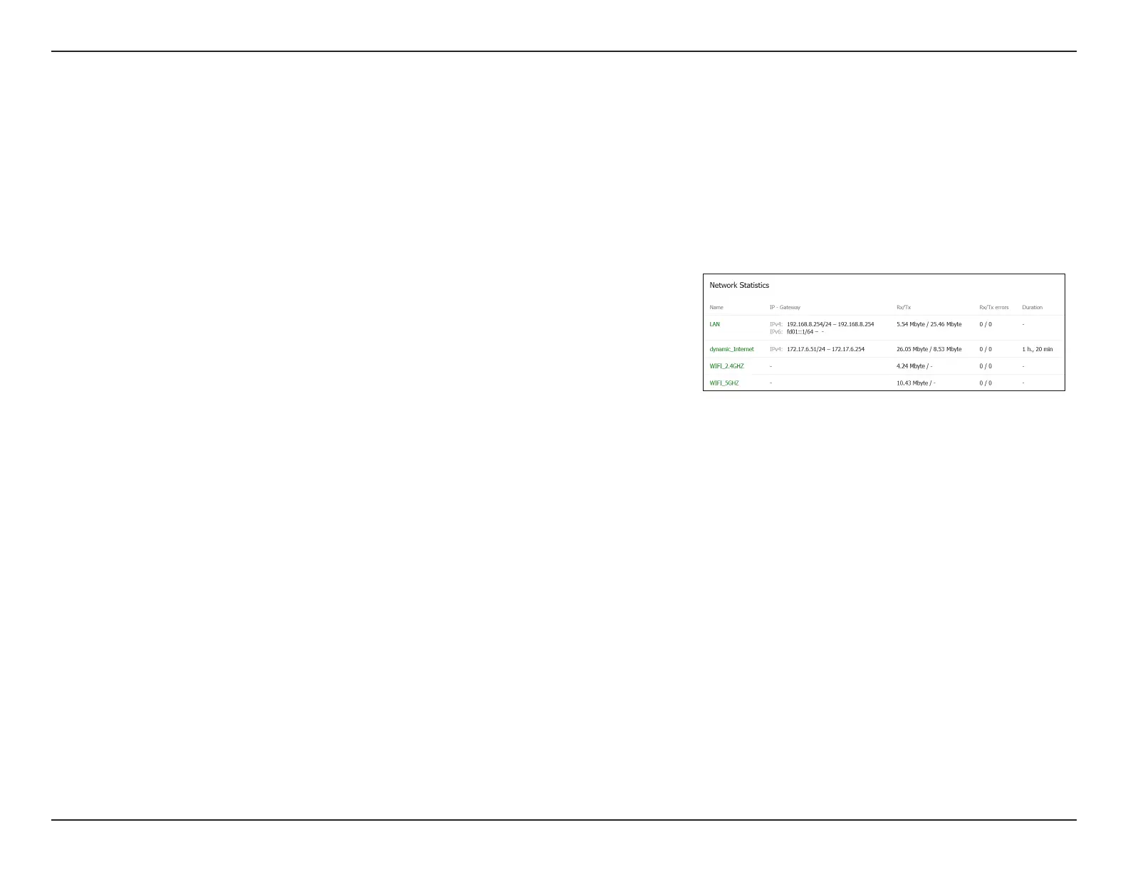 The Statistics menu is used to display more in-depth statistics for the dierent interfaces on the router.