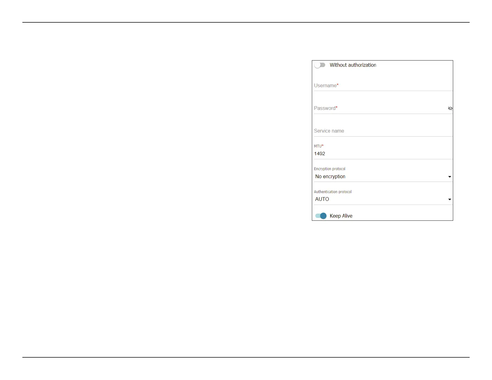 Username If Without authorization is disabled, specify the PPP