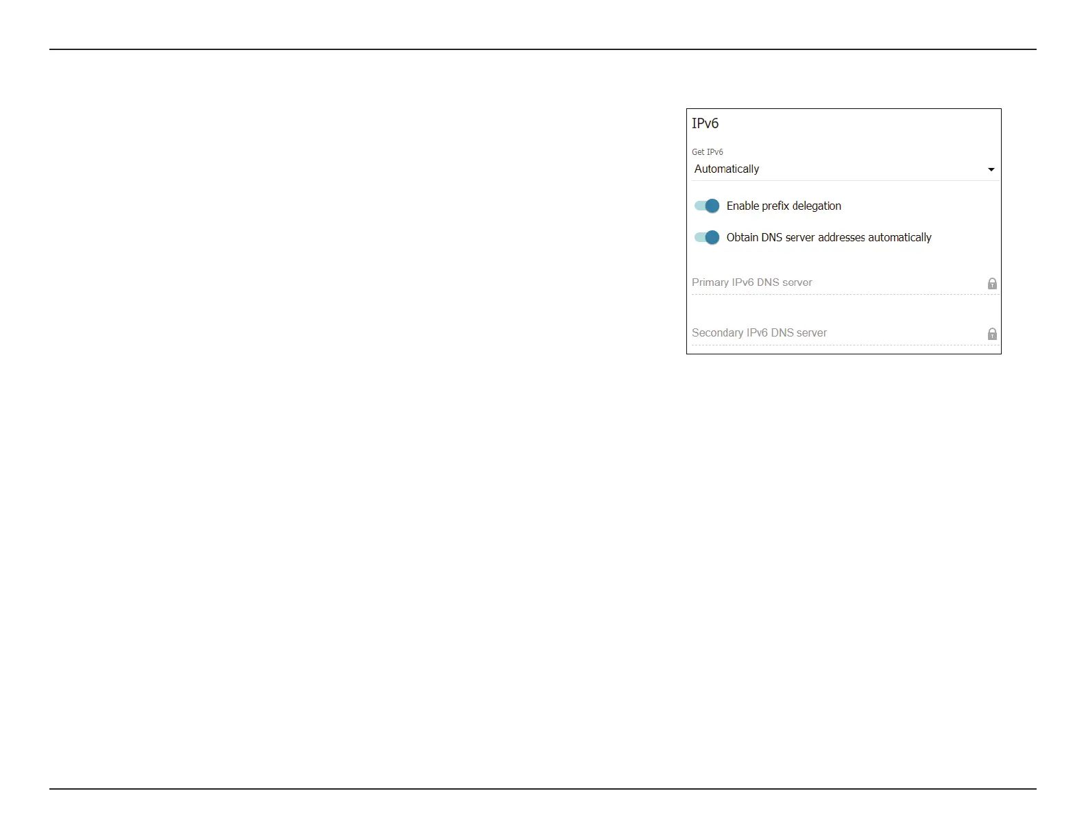 Get IPv6 Choose Automatically, IPv6 by DHCPv6, by SLAAC, or