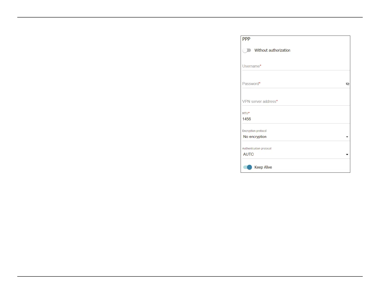 Username If Without authorization is disabled, specify the PPP
