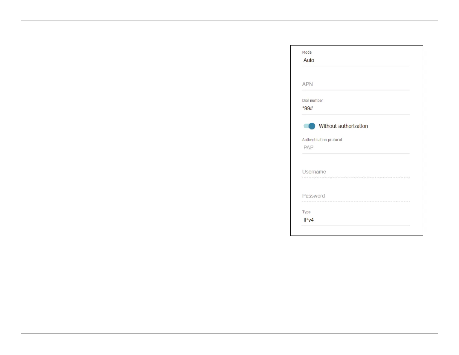 Mode Specify the mode. The options are Auto, 2G / 3G, 3G / 4G,