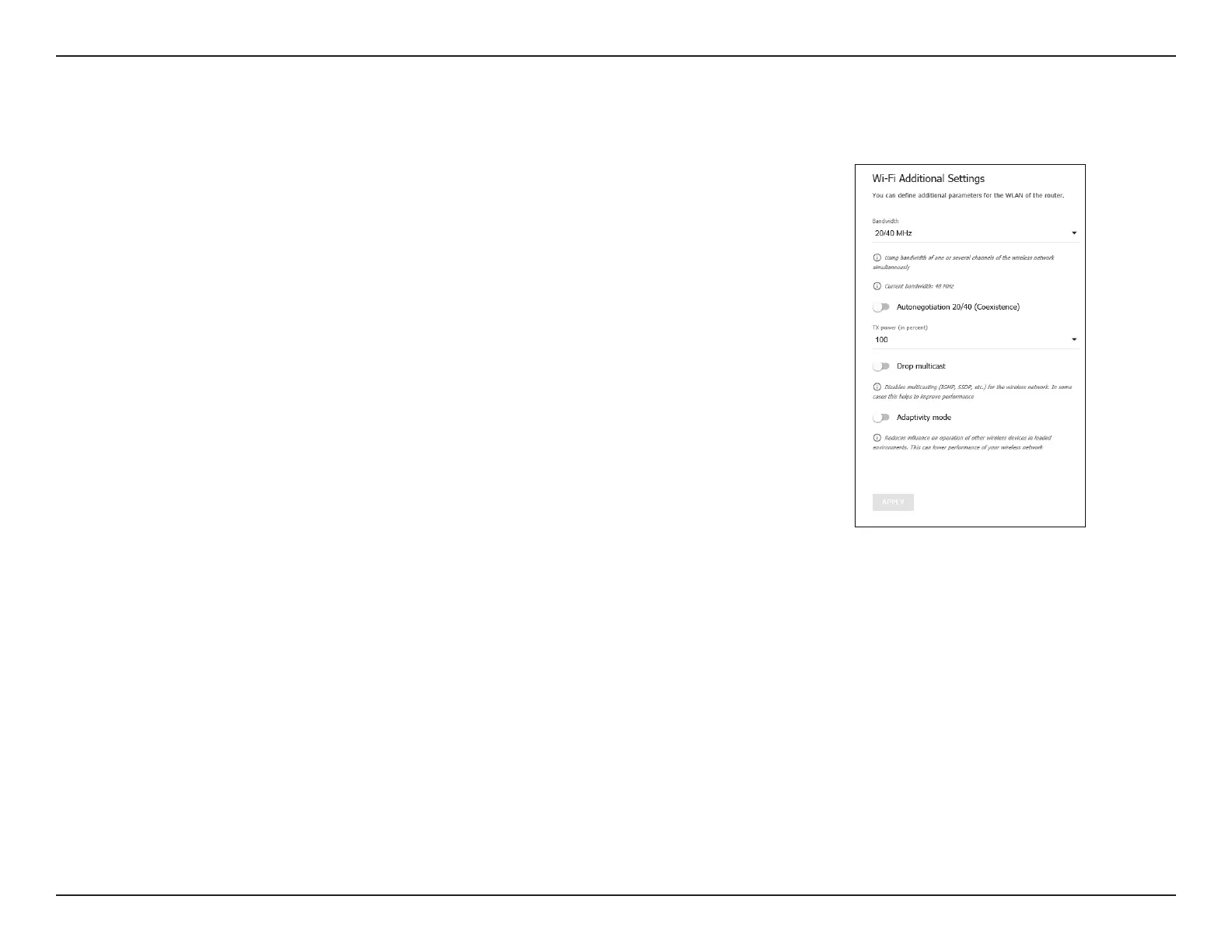 Bandwidth The channel width to use. Choose between 20 MHz and 20/40 MHz.
