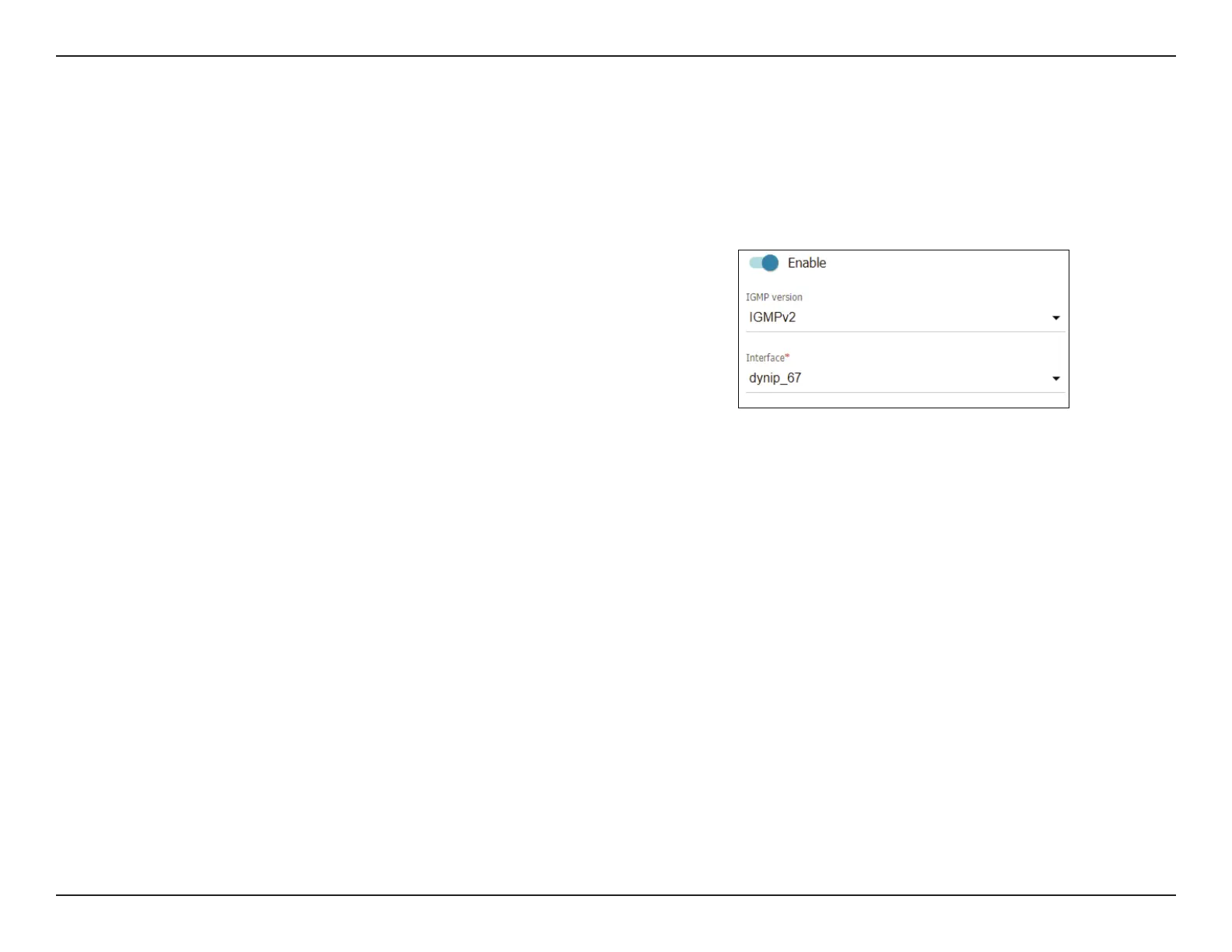 The IGMP page allows you to enable/disable Internet Group Management Protocol (IGMP). IGMP is used to managed multicast trac for IPv4-
