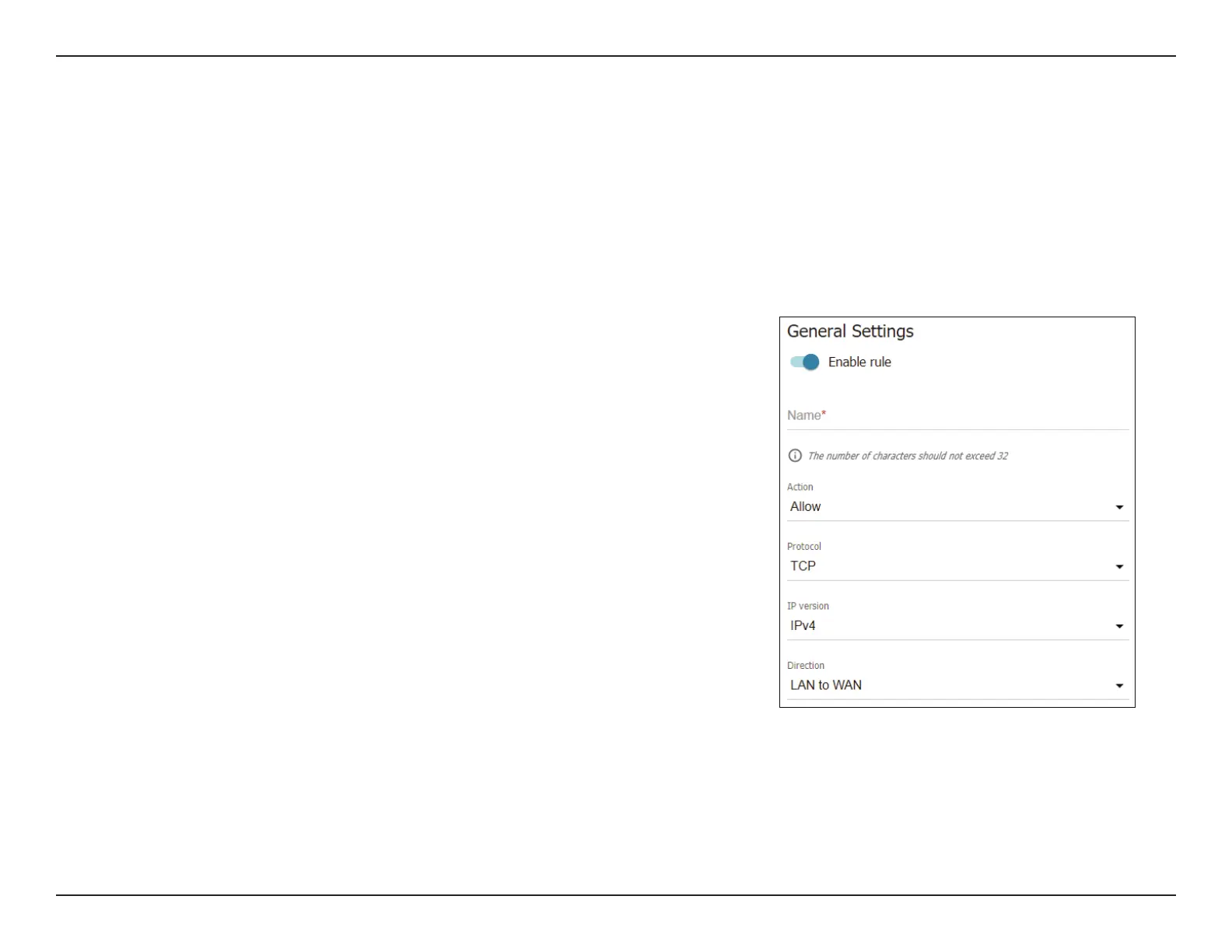 Name Specify a name for the rule. This name is for reference only and does