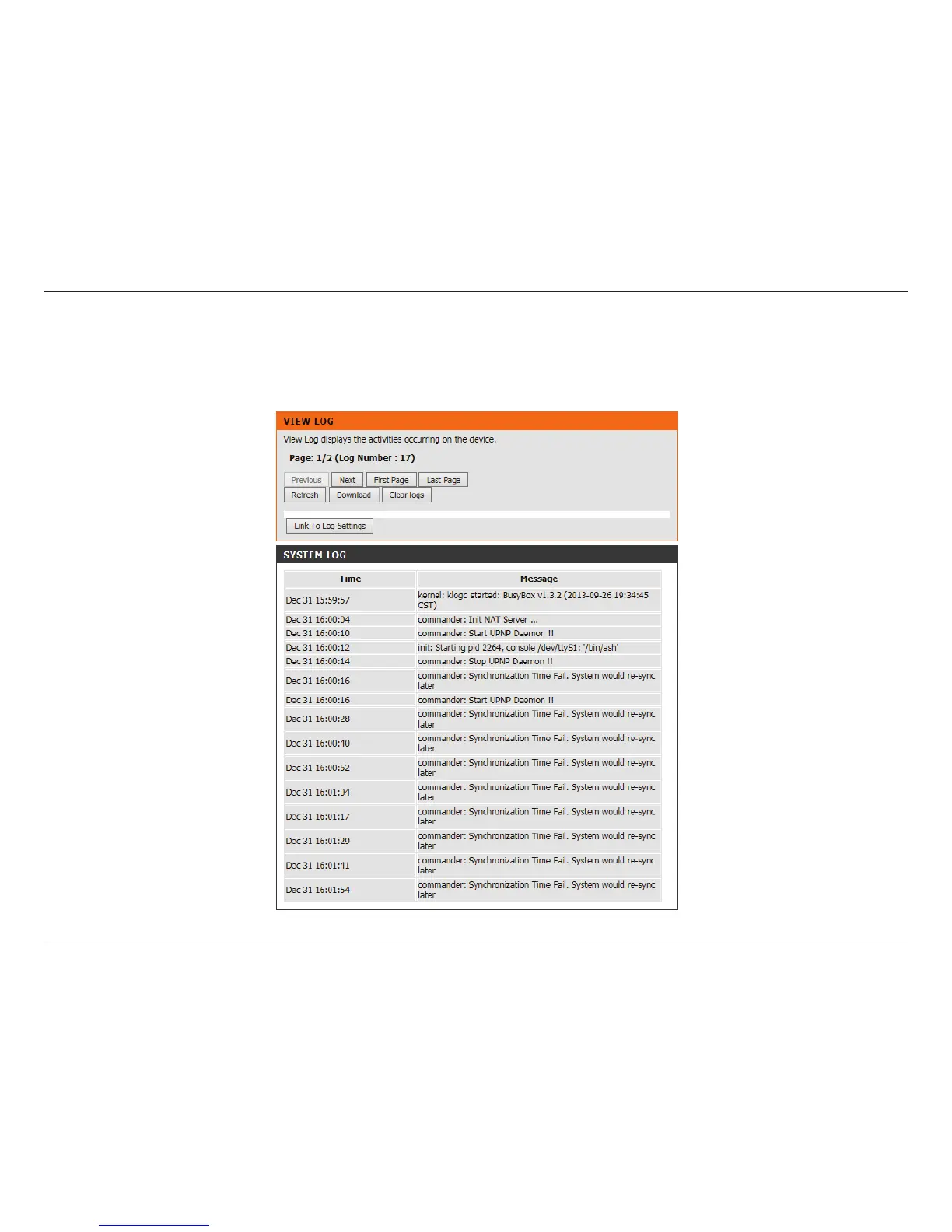 Here, you can view logs and dene events that you want to view. This router also has an internal syslog server, so you can send the log les to a
