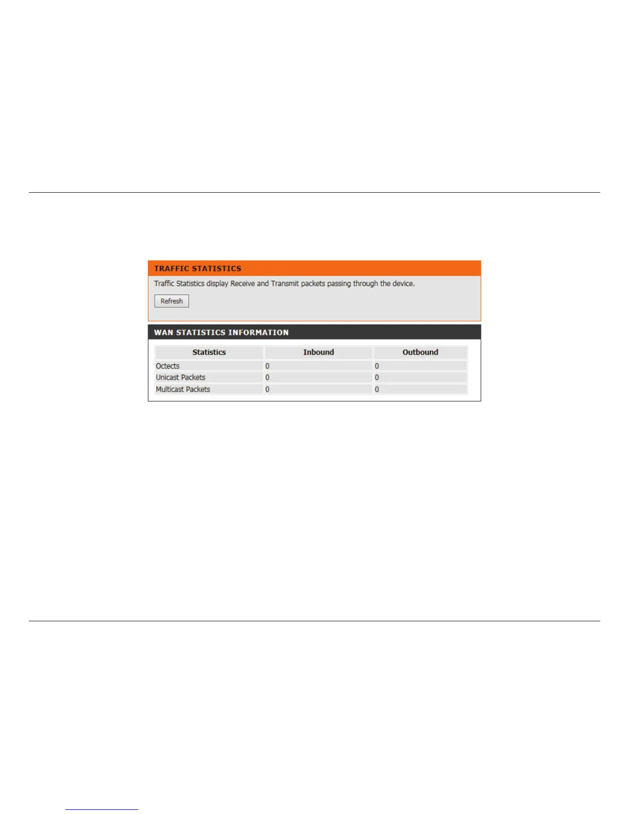 Here you can view the packets transmitted and received passing through your router on both WAN and LAN ports. The trac counter will reset if the