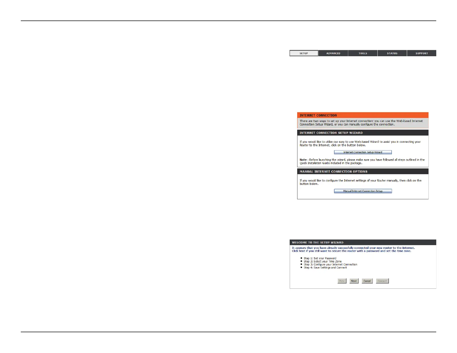 The SETUP pages allow you to congure your Internet and wireless settings, as well as manage