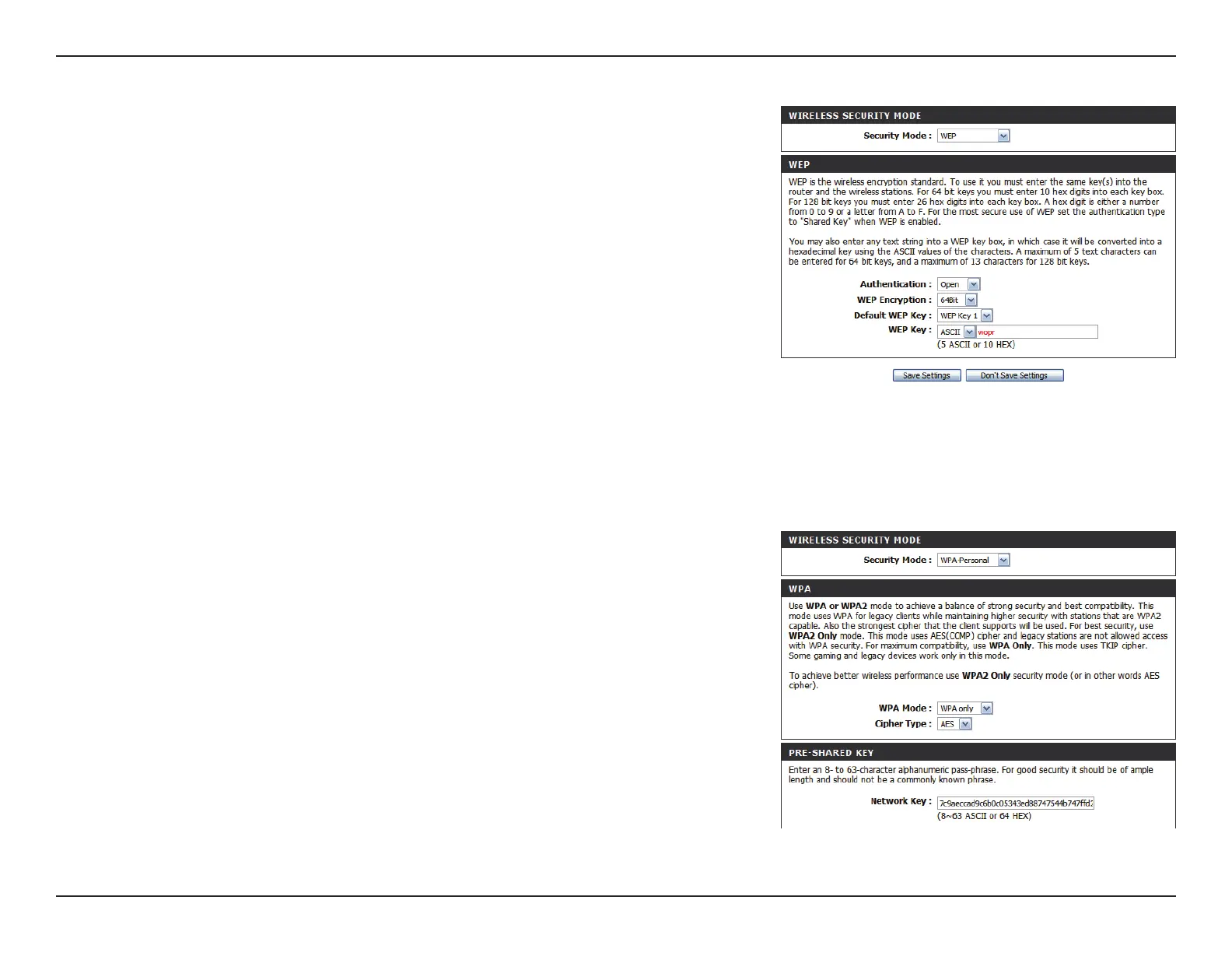 Select whether to use WPA2 only or WPA only. WPA2 only is