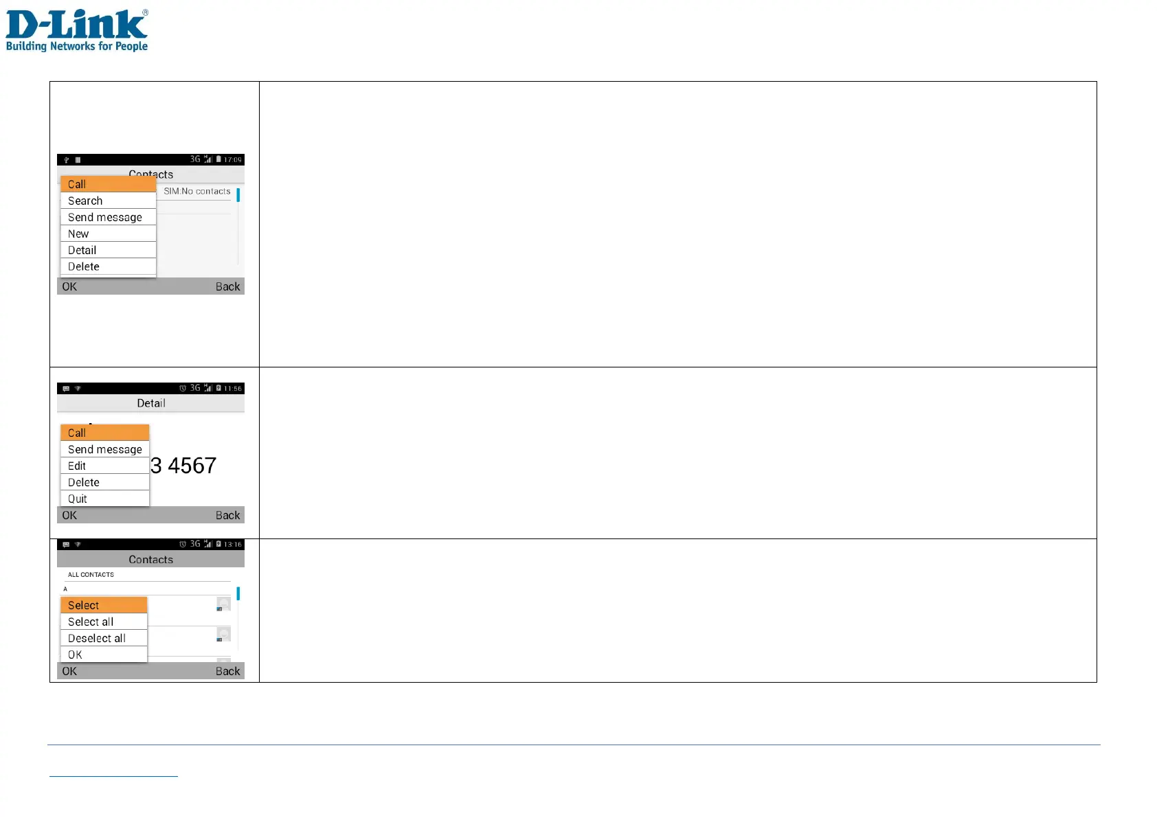 1) Scroll and select the contact which you wish to delete and select [Detail] [OK] [Delete] [OK]