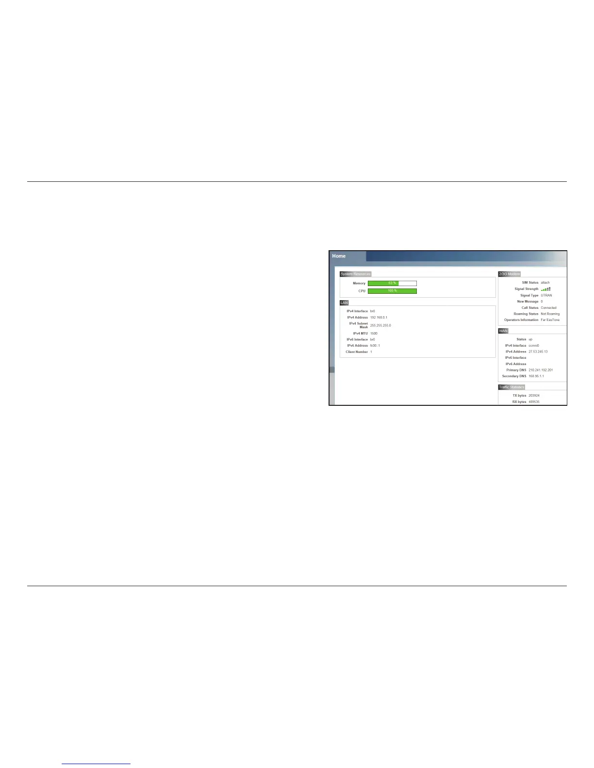 The Home page acts as a dashboard to quickly display your conguration settings and provide a summary of the current status of your network.