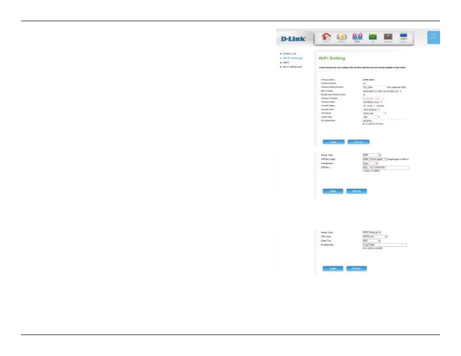 If you choose WEP, the following options will appear: