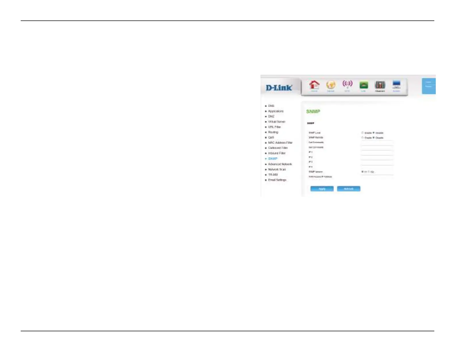to the administrator of the network. SNMP can be used to monitor trac and statistics of the DWR-922. The DWR-922 supports SNMP v1 and v2c.
