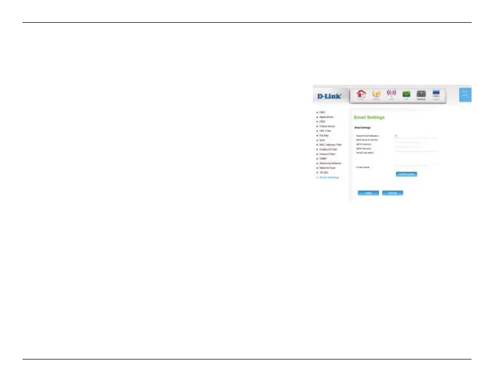 Email Settings allow you to send the system log les, router alert messages, and rmware update notications to an email address. After