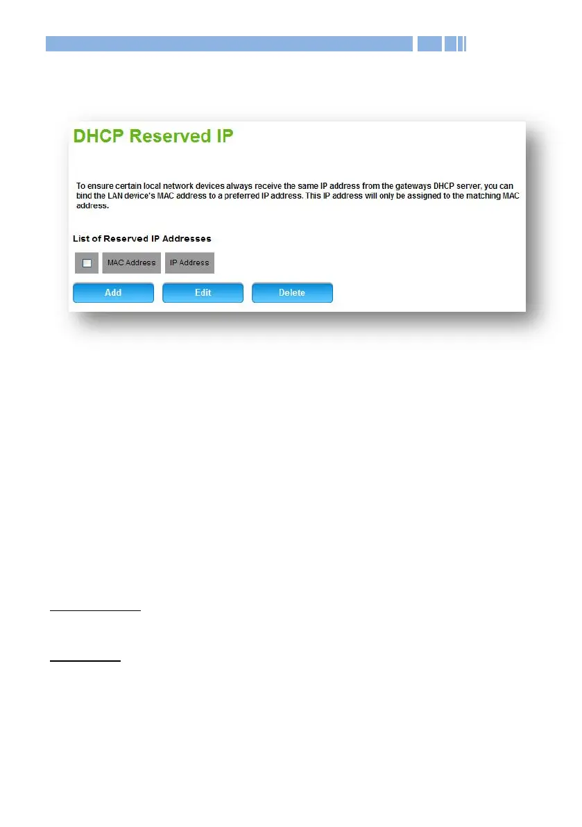 Click Add to add a reserved IP, or select an item and click Edit to modify