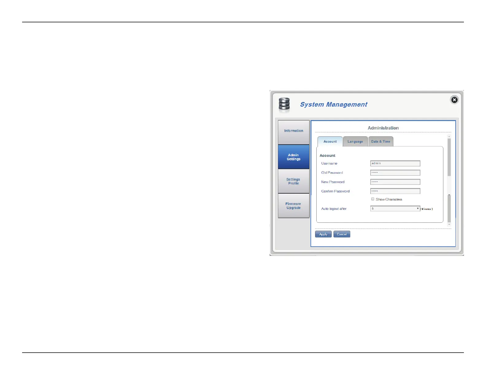 This tab allows you to customize your own username and password as well as adjust the UI’s automatic logout timer.
