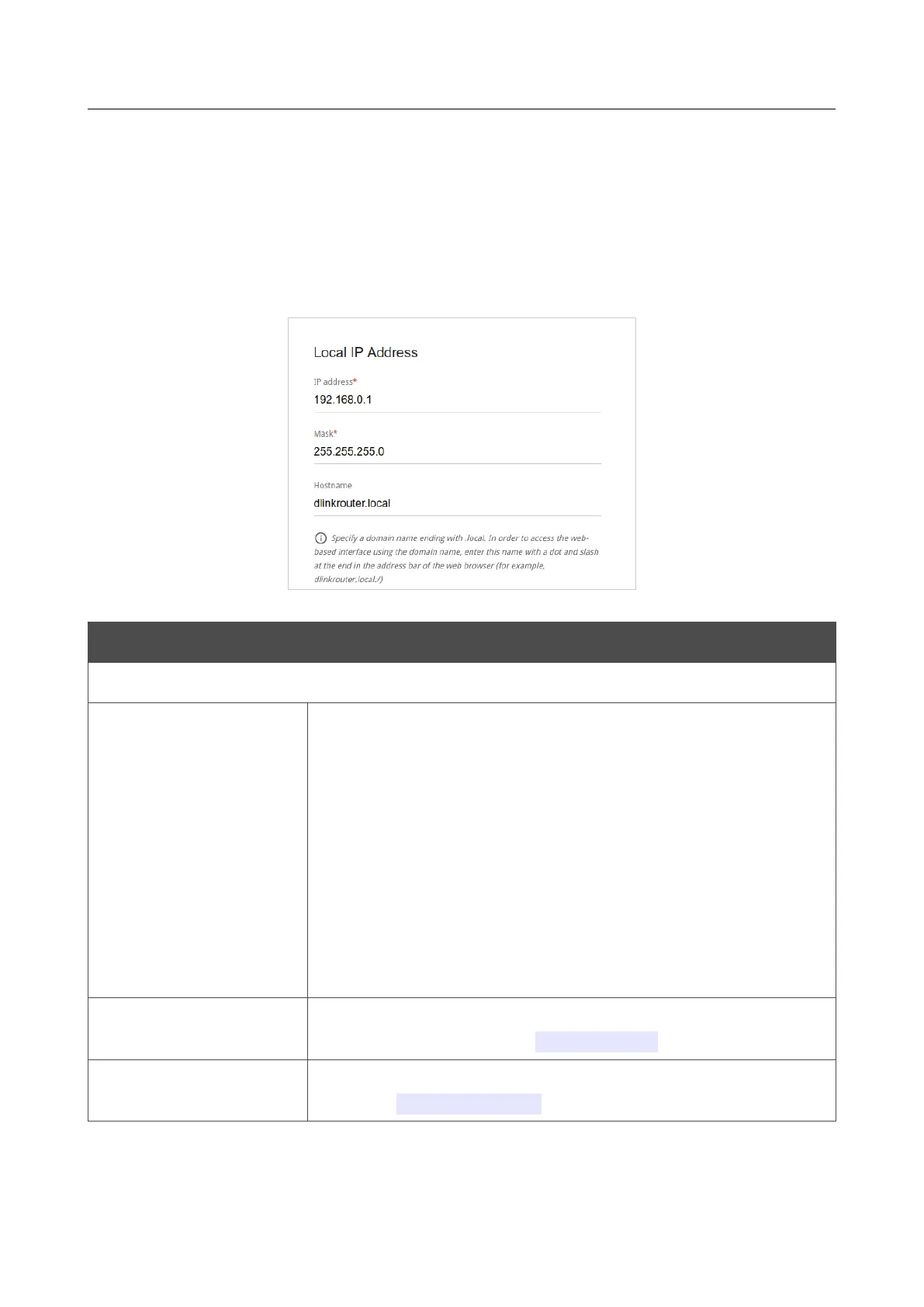 The IPv4 address of the router in the local subnet. By default, the