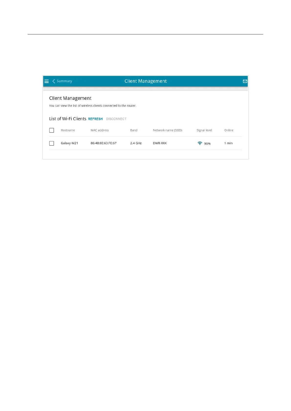 On the Wi-Fi / Client Management page, you can view the list of wireless clients connected to