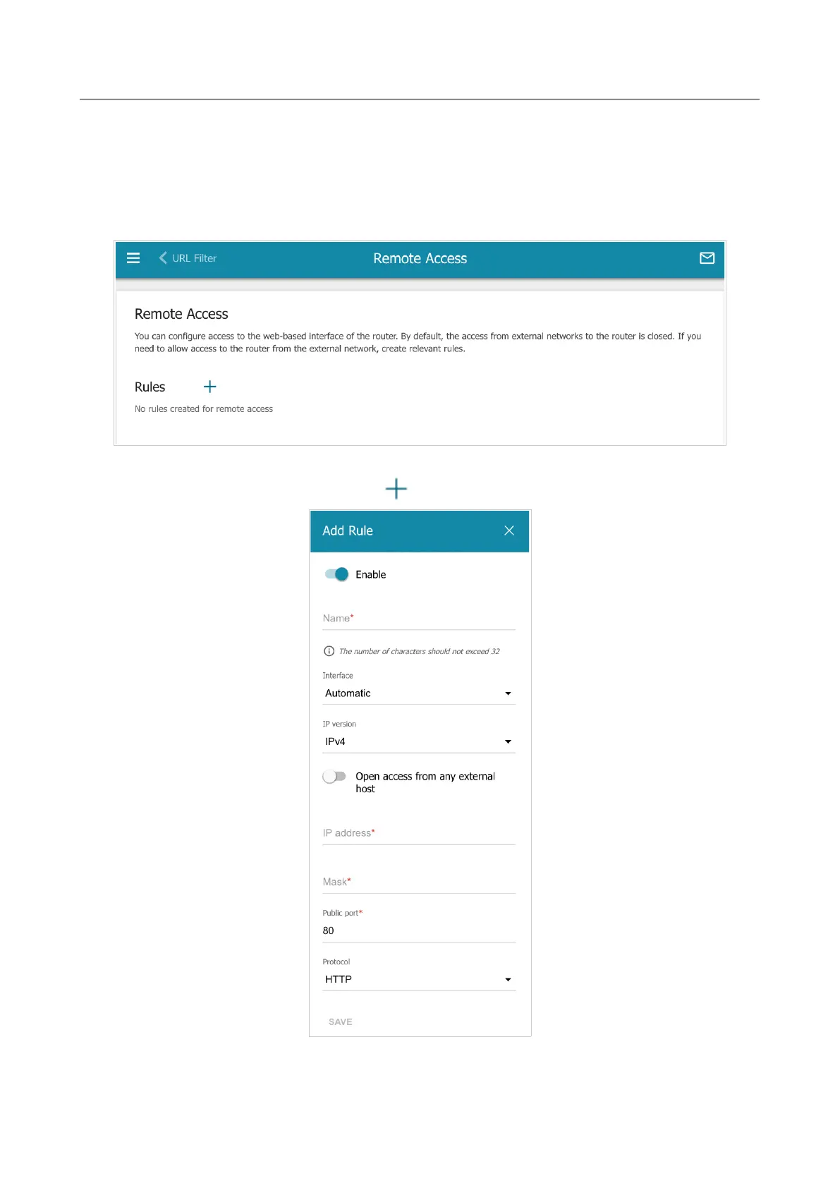 the router. By default, the access from external networks to the router is closed. If you need to allow