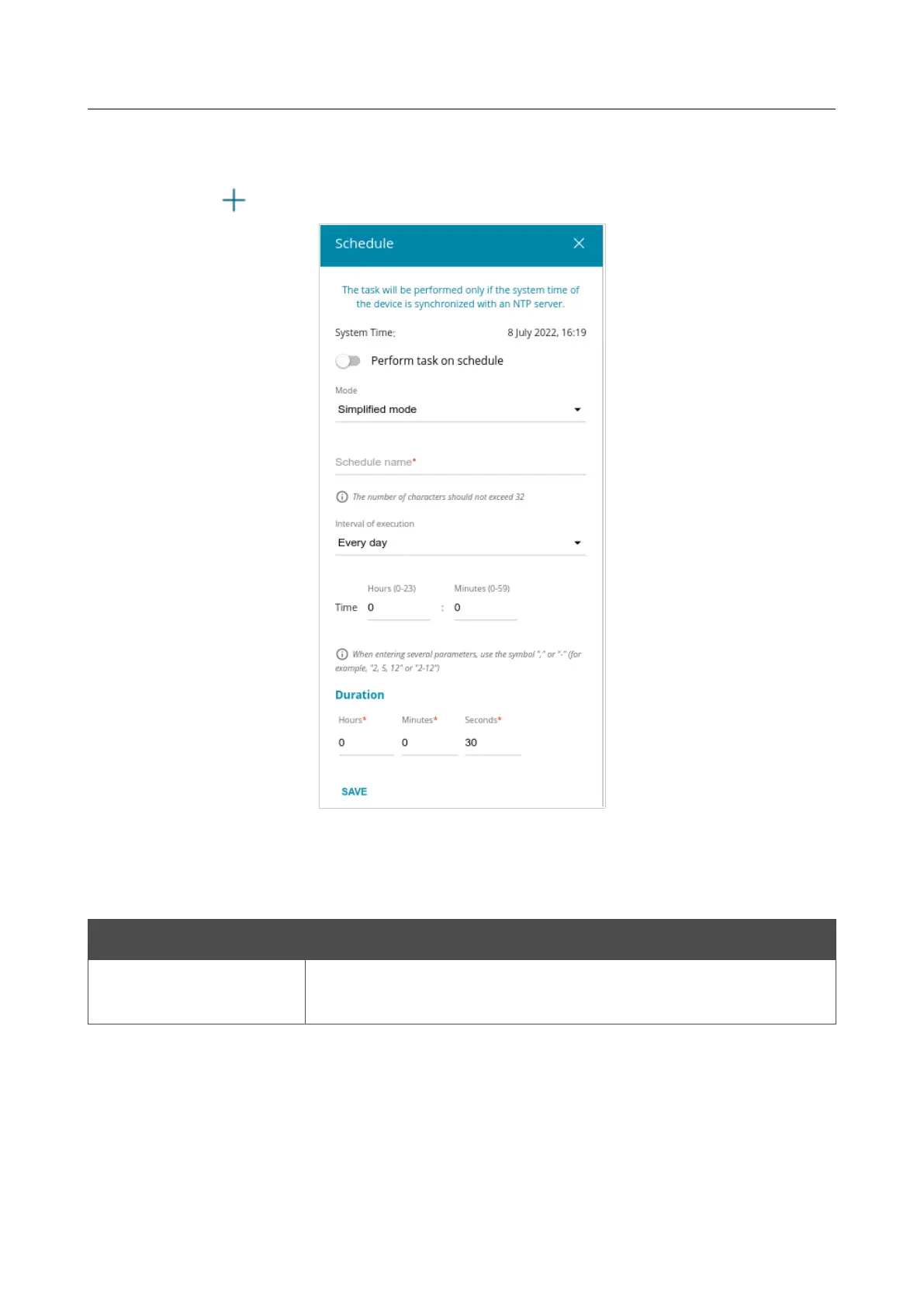 Figure 179. The window for adding a schedule for a task.