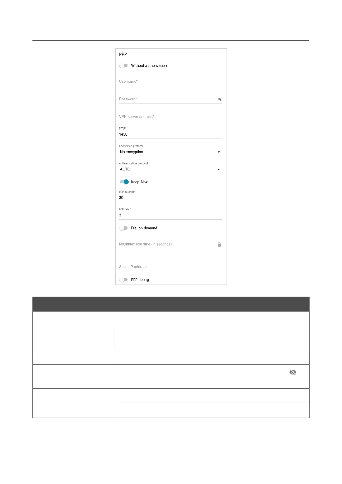 Figure 78. The page for creating a new PPTP connection. The PPP section.
