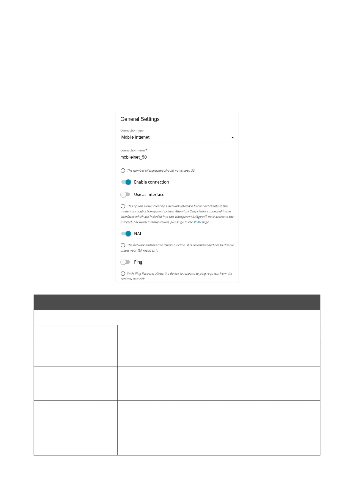 Figure 86. The page for creating a new Mobile Internet connection. The General Settings section.