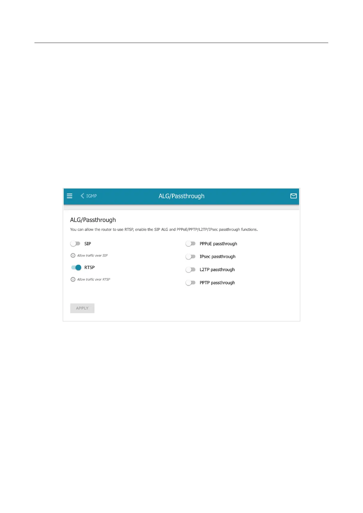 On the Advanced / ALG/Passthrough page, you can allow the router to use RTSP, enable the