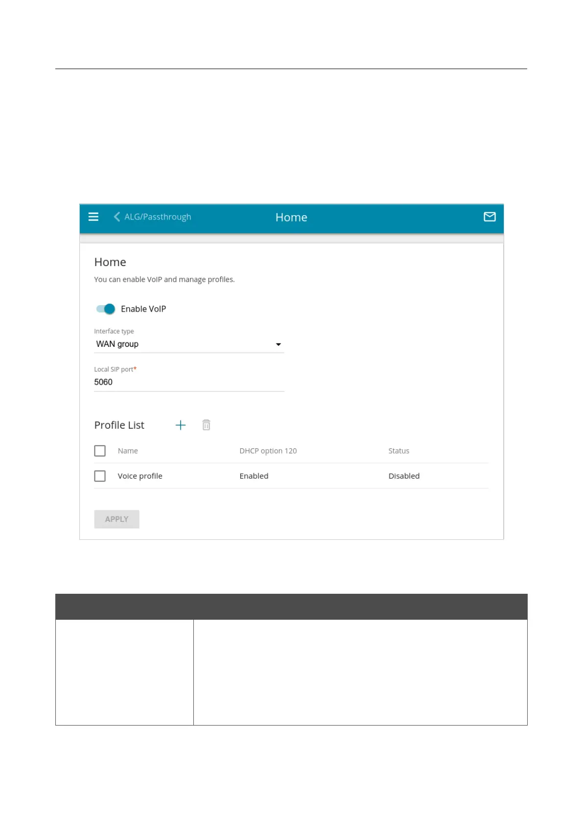 On the VoIP / Home page you can enable VoIP and manage profiles.