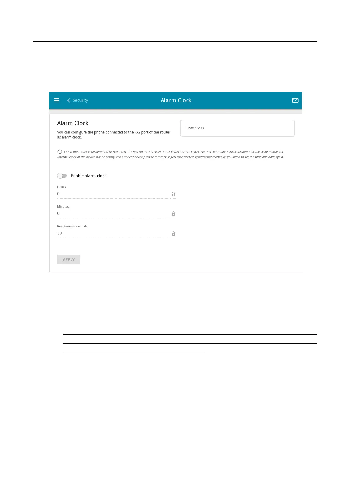 On the VoIP / Alarm Clock page, you can configure the phone connected to the FXS port of the