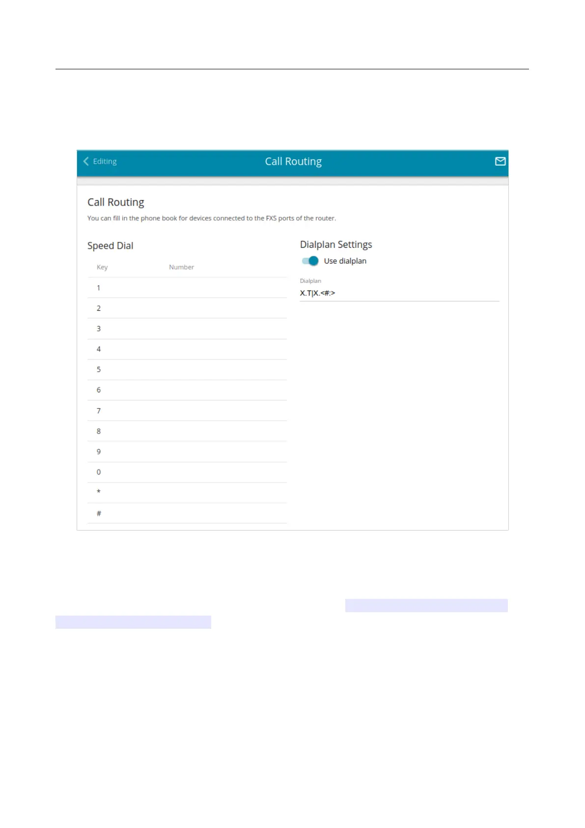 On the VoIP / Profile Name / Call Routing page, you can configure speed dial parameters and